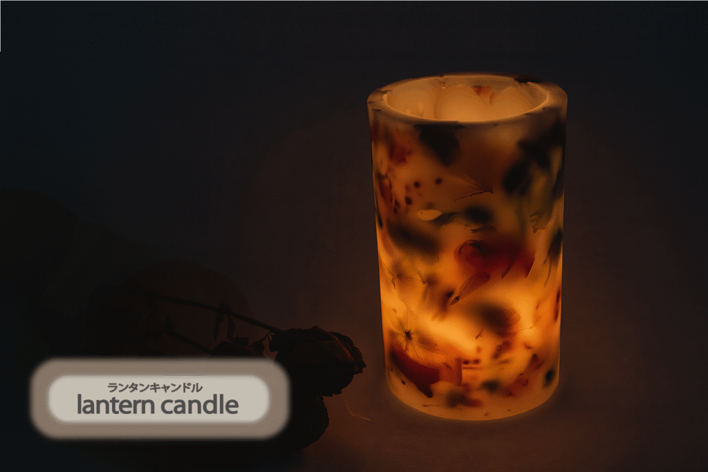 火を灯すとお花や葉が透けて幻想的な雰囲気を醸し出してくれるデザイン性の高いキャンドルです。外側のキャンドル部分には直接、火を灯さず内側の空洞にLEDやティーライトキャンドルなどを入れて楽しむため、繰り返し使用することができることが魅力です。